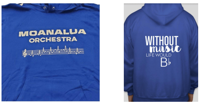 Show your MMS orchestra pride by purchasing and wearing dress code appropriate apparel. All items conform to Moanalua Middle School dress code guidelines. Apparel may be ordered online and picked up in school. It is the student’s responsibility to see Mr. Uyehara for online order pickup. Students may also purchase items at school with cash or check written to “MMS Orchestra Booster Club.”